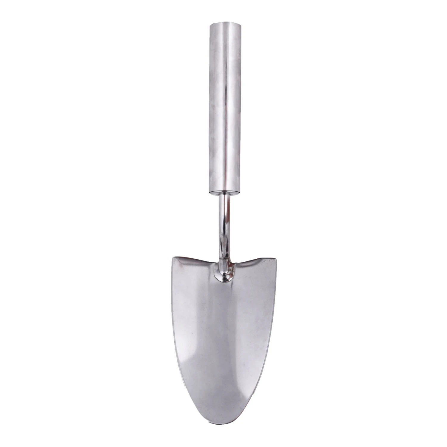 Ohne eine Blumenkelle sind viele Gartenarbeiten undenkbar. Beim Pflanzen und Umtopfen, beim Lockern der Erde und Unkrautjäten ist eine solche Kelle Ihr treuer Helfer. Diese Blumenkelle ist aus strapazierfähigem, rostfreiem Edelstahl gefertigt und hält problemlos hohen Belastungen stand.