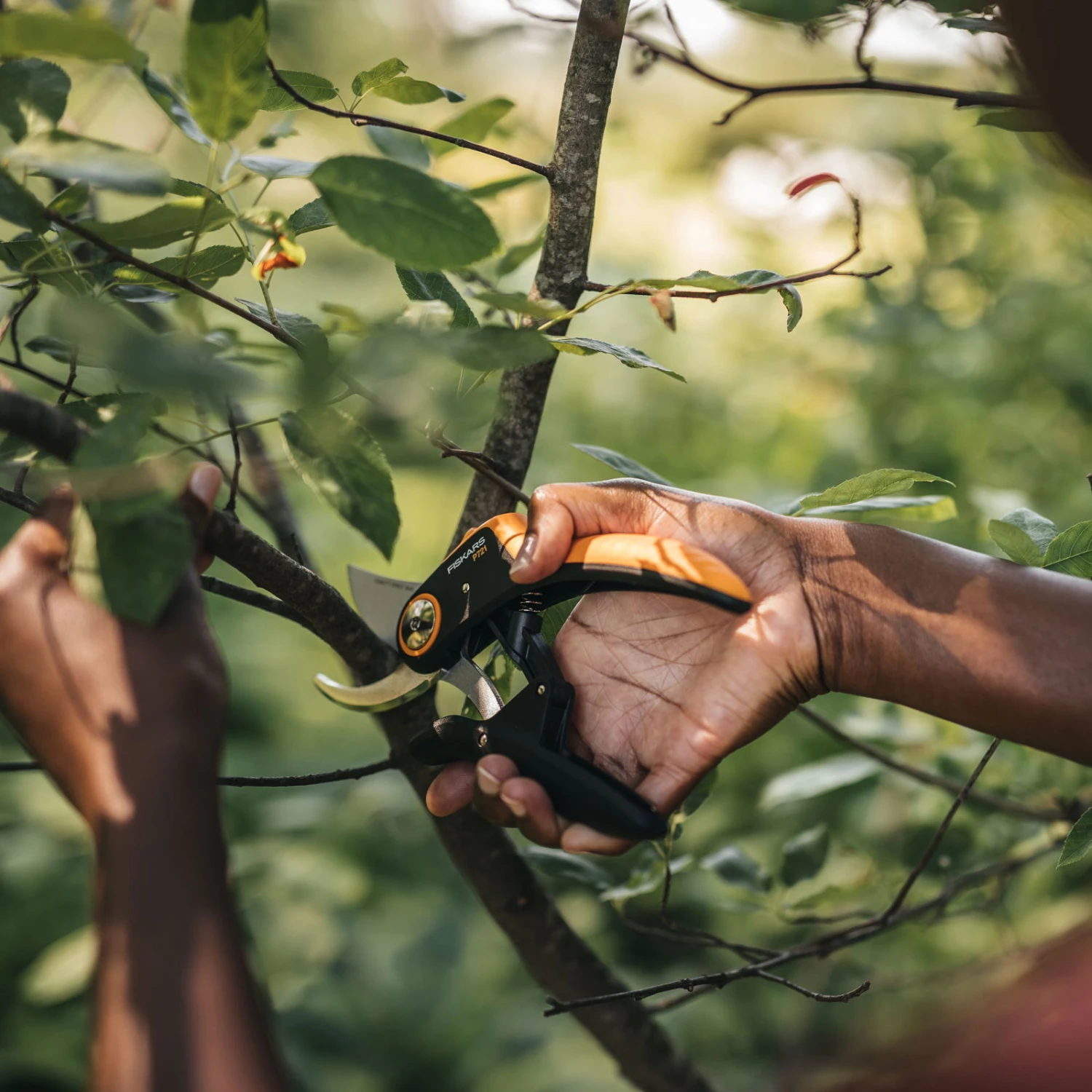 Die Bypass-Gartenschere ‚PowerLever‘ von Fiskars ermöglicht kraftsparendes Schneiden von frischem Holz mit einem Durchmesser von bis zu 24 Millimetern. Diese Gartenschere ist Ihr vielseitiges Werkzeug für sauberen Rück- und Formschnitt. Zu den Vorteilen der Bypass-Schere zählen unter anderem die ergonomischen SoftGrip-Handgriffe und eine präzisionsgeschliffene Edelstahlklinge.