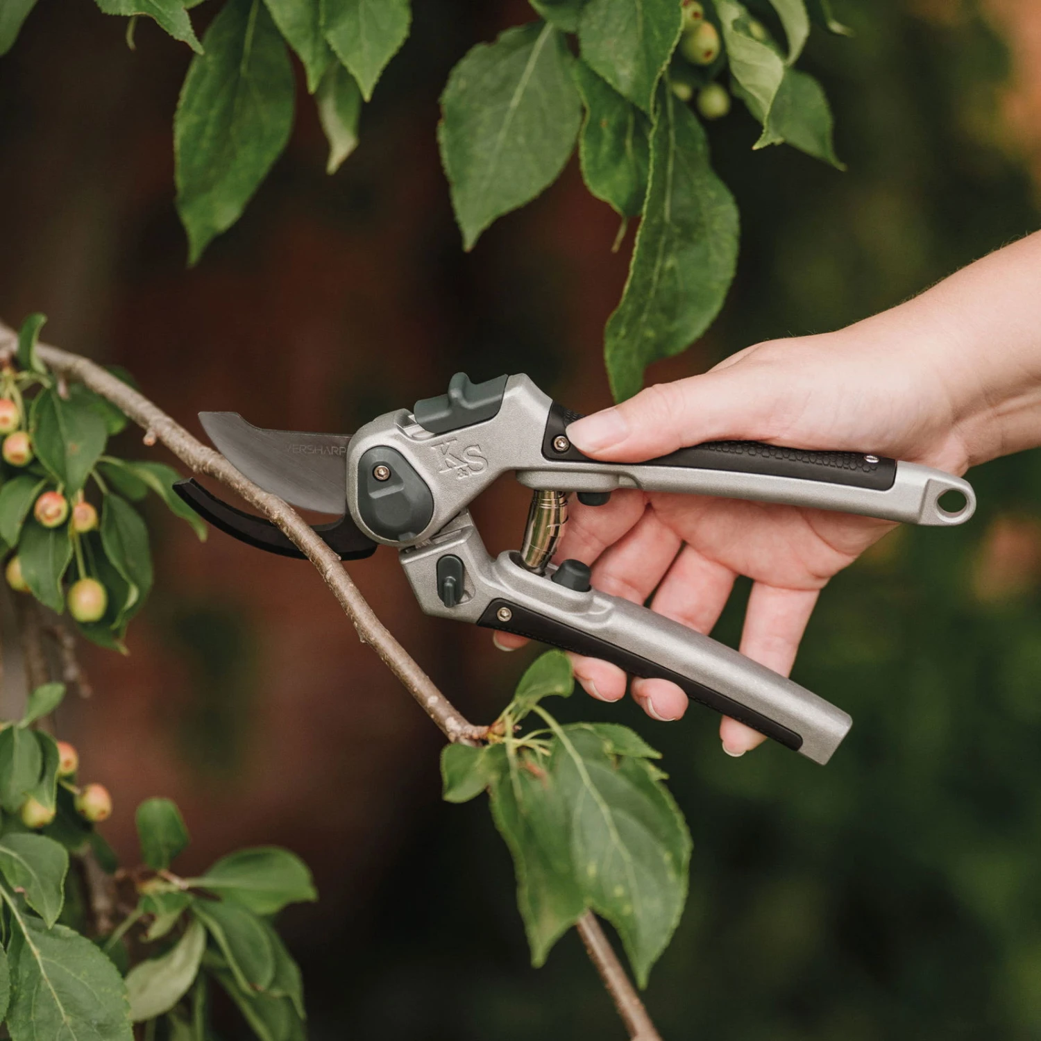Die Bypass-Gartenschere von Kent & Stowe eignet sich hervorragend zum Schneiden von frischem Holz mit einem Durchmesser von bis zu 24 Millimetern. Diese hochwertige Gartenschere überzeugt durch robuste Klingen aus Carbonstahl, welche dank der Eversharp™-Technologie über einen langen Zeitraum ultrascharf bleiben. Die Bypass-Gartenschere lässt sich beidhändig bedienen und genau an Ihre Handgröße anpassen.