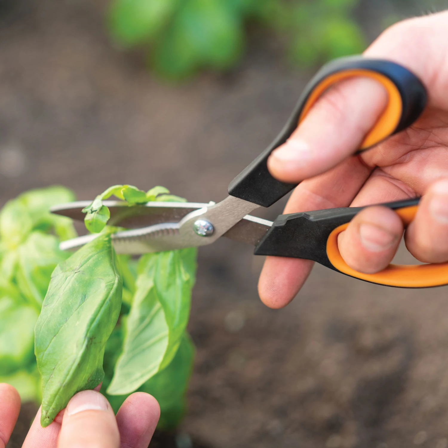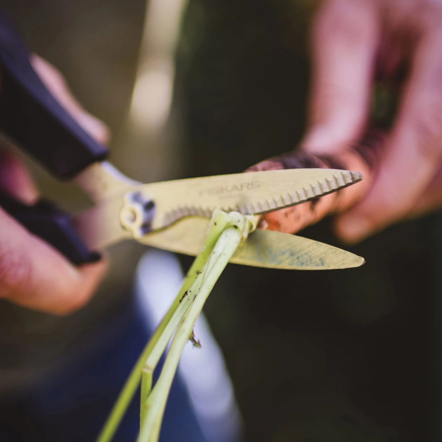 Die Gemüseschere Solid™ SP240 von Fiskars ist extra zum Ernten von Gemüse und Kräutern konzipiert. Diese Gartenschere verfügt über präzisionsgeschliffene Klingen mit einer gezahnten Schneide. Das intelligente Design verhindert das Abrutschen von Stängeln beim Schneiden und sorgt für einen sauberen Schnitt. Die SoftGrip-Handgriffe ermöglichen ermüdungsarmes Arbeiten.