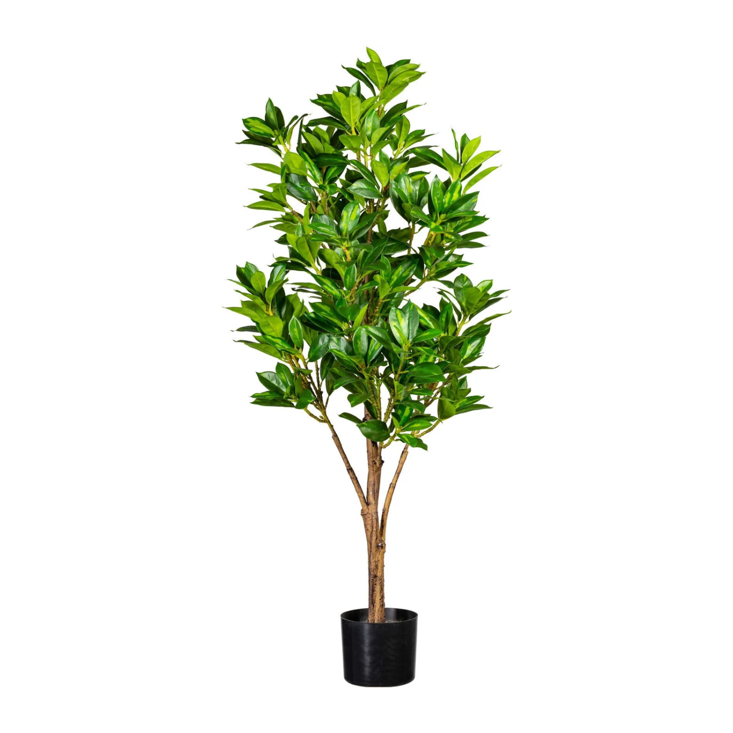 Dieser rund 120 Zentimeter hohe künstliche Kirschlorbeer begeistert mit seinem natürlich wirkenden, üppigen Blätterkleid und harmoniert hervorragend mit nahezu jedem Einrichtungsstil. Die Kunstpflanze Kirschlorbeer im Kunststofftopf können Sie auf Wunsch durch einen passenden Übertopf optisch aufwerten.