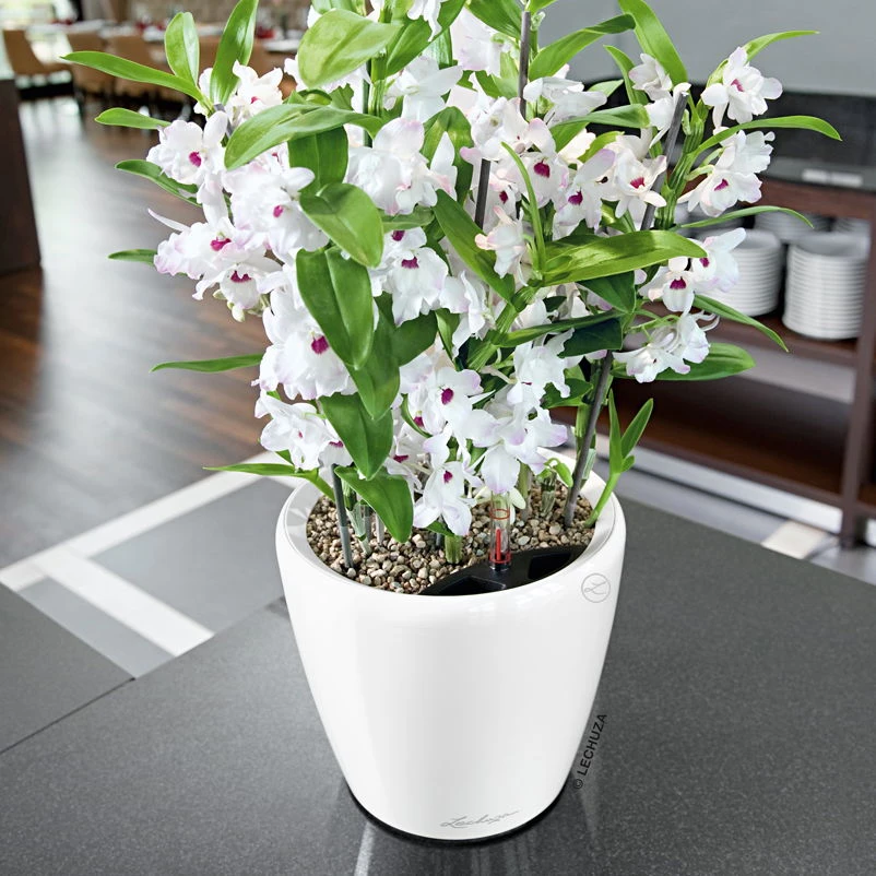 Mit diesem Komplettset können Sie sofort loslegen. Es beinhaltet neben dem Lechuza Pflanzgefäß Classico Premium 50 LS in hochglänzendem Weiß das komplette Zubehör, bestehend aus Pflanzeinsatz, Granulat für die Drainageschicht und Wasserstandsanzeiger.