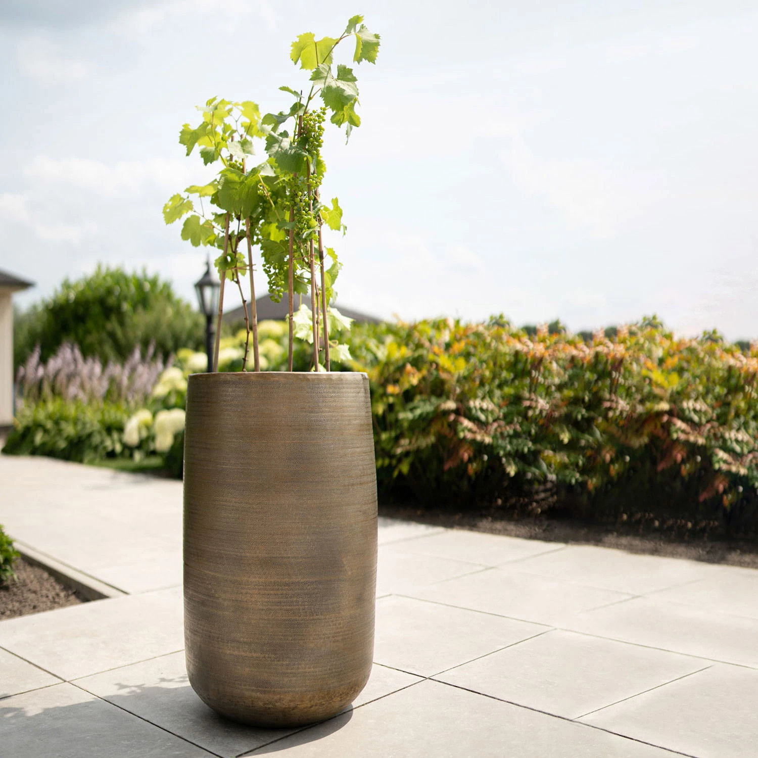 Das Pflanzgefäß ‚Rowen‘ von Kölle präsentiert sich in elegant-schlanker Optik und wertet Ihre Begrünung in den Innenräumen oder outdoor mit einem glamourösen Akzent in edlem Gold auf. Dieser dekorative Pflanztopf fasst rund 60 Liter und wird aus hochwertig verarbeitetem Aluminium mit einer aufwendig per Hand aufgetragenen aparten Oberflächenstruktur hergestellt. Dadurch entsteht ein einzigartiges Gesamtbild, sodass jedes Pflanzgefäß ‚Rowen‘ ein Unikat darstellt. Sie können den Blumentopf problemlos ganzjährig auf Ihrer Terrasse, Veranda oder auf dem Balkon stehen lassen, denn ‚Rowen‘ ist rostfrei und auch sonst gegenüber Witterungseinflüssen unempfindlich. Mit diesem schmalen Pflanzgefäß harmonieren sowohl überhängend als auch aufrecht wachsende Zierpflanzen.