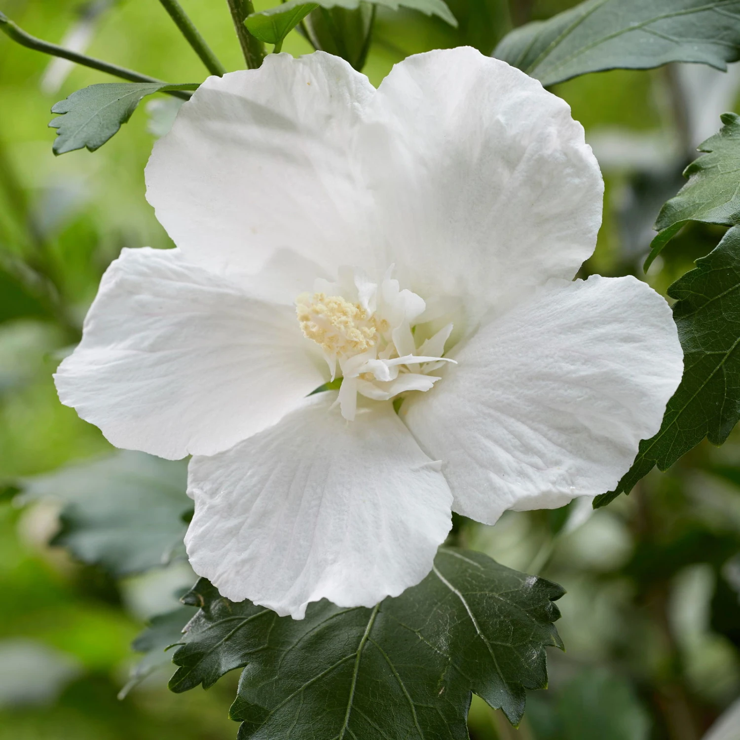 Der Säulen-Gartenhibiskus, Hibiscus syriacus ‚Flower Tower White®‘, gehört zu den bekanntesten und beliebtesten Sommerblühern. Die exotische Blütenform und die lange Blütezeit des winterharten Strauchs erfreuen Sie jedes Jahr. Der Hibiskus ‚Flower Tower White®‘ setzt mit seinen un- bis halbgefüllten, formvollendeten Blüten in Ihrem Garten reizvolle Akzente in der Farbe weiß. Ihr Hibiscus syriacus ‚Flower Tower White’® ist mit bis zu 300 Zentimetern Wuchshöhe und nur 80 cm Breite ein schöner, säulenförmiger Zierstrauch, den Sie im Einzelstand und als Element einer sommerblühenden Hecke gleichermaßen erfolgreich in Szene setzen können. An einem sonnigen Standort wird sich der Garten-Hibiskus wohlfühlen, außerdem braucht das Gehölz ein lockeres und nährstoffreiches Substrat. Auf Trockenheit reagiert der Hibiscus ‚Flower Tower White®‘ empfindlich mit Knospenabwurf, Staunässe aber unbedingt vermeiden. Ein jährlicher leichter Rückschnitt im Frühjahr (März) fördert den Neuaustrieb und damit die Blütenpracht im Sommer.